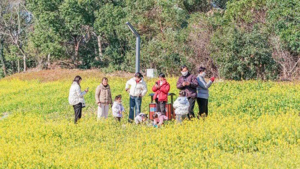 冬天,本是草木萧条、寒意渐浓的时节,可在良渚,却藏着一处“反季节”的惊喜。近来,杭州余杭良渚七贤桥村村口的运溪路旁边,一大片油菜花正开得热烈奔放。阳光洒在花田上,满目金黄随风摇曳,连蜜蜂都被这冬日里的花香招引,在花丛中嗡嗡飘动、络绎采蜜。路过的行人纷繁停步摄影,本来静寂的冬日街景,由于这片“提早赴约”的油菜花,多了几分春日的鲜活与暖意。