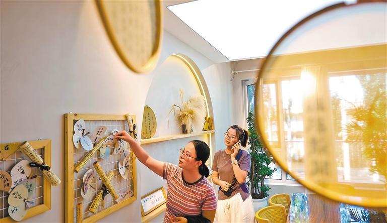 7月30日,游客在吴忠市利通区牛家坊民俗文化乡民宿观赏。当地已构成集果蔬采摘、休闲旅行、农产品加工出售为一体的工业系统,是“全国一村一品示范村”“全国村庄旅行要点村”。